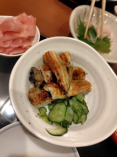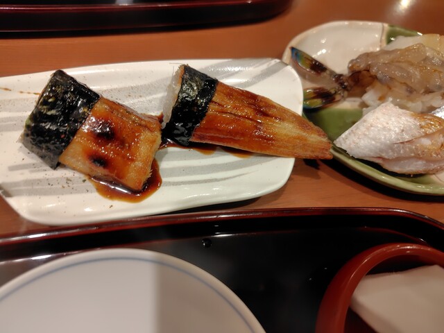 相変わらずアナゴの生地焼きは最高で、後から来た方たちも含め客全員が頼んでました。それからつまみでいただいたコハダのガリ巻きが特においしかったと思います。なお、お椀は、鯛の吸い物でした。冷たいのもおいしかったのですが、熱いのもまたいいですね。
