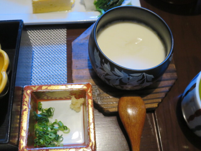 前菜 胡麻豆腐胡桃だれ うるい真砂和え フルーツトマトと山菜の加減酢ジュレ うどきんぴら
