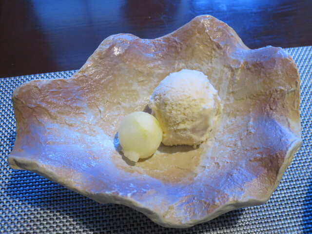 自家製デザート 赤粒胡椒あいす 庄内麩のフィユタージュ