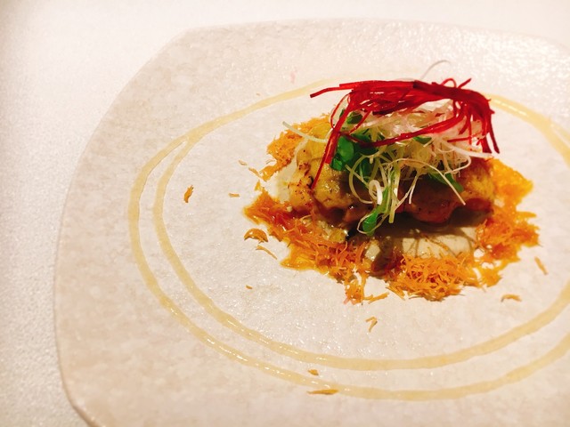 若どりの味噌幽庵焼きにフォアグラを重ね焼き上げた一品。
