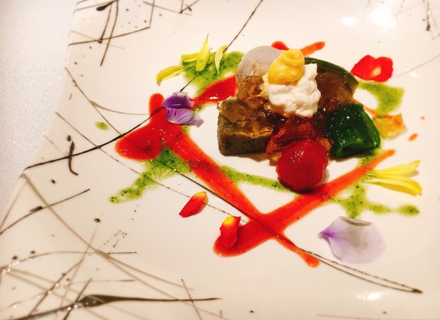 爽やかに、お出汁のジュレと新鮮なお野菜を