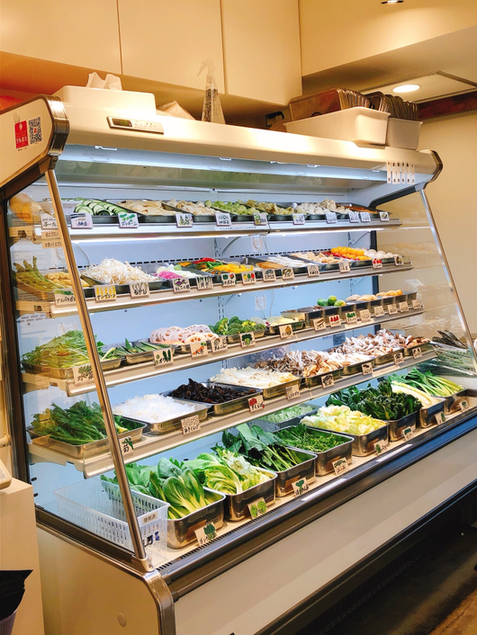 ベースのスープを選び、そこにショーケースにある様々な具材をボウルにいれて調理してもらうというスタイル。量り売りです。
