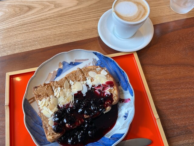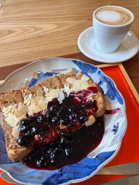 アーモンドスライスものり、アクセントでかかったブルーベリーソースも秀逸。