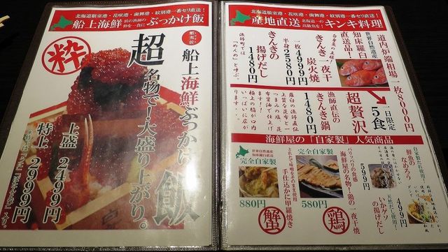 姫路でいただいた『海鮮の宝石箱』船上海鮮ぶっかけ飯が、北新地店でもスタートとか聞いちゃったらもぉ〜〜〜速攻リピでしょ( ̄ー ̄)bまずは板わさでアサヒ・ドライプレミアムをぷっはぁ〜〜〜(*´▽`*)てか初めて飲んだドライプレミアム!!コクがあってめちゃ旨しっ!!生きててヨカッタ〜〜〜!!「とりあえず」的にいただいた板わさでしたか、魚肉ばむっちり、甘〜い!!山葵をきかせて甘口の昆布醤油でいただくと最高!!正月の「えぇ蒲鉾」を、もっと美味しくしちゃったような板わさが399円!!お通しも優しい甘さで炊かれてて、素材の美味しさが光ってます☆にほんいちコロッケ 399円これこれ、絶対食べたかったやつ甘〜いお芋さんにバターを効かせてザクッとした衣をまとった絶品コロッケ!!そしていよいよ真打ちの登場!!・・・てか「早っ!!」とかツッコミ入りそうやけどwなんたって二人やからなぁ〜、腹パンになる前にメインに行っておかねば。船上海鮮ぶっかけ飯2999円気が済むまでイクラをぶっかけてくれてこのお値段!!以前は5人でシェアやったけど、今回は二人♪ぼたん海老も蟹もいただいちゃいまっせ〜〜〜( ̄ー ̄)ど〜してここまでハマったかっつ〜と、なんてったっていくらが旨い味付けももちろんの事、ぷっちん弾ける食感は、なかなか出会えない逸品ですよ♡てか雲丹も最高やなぁ〜〜〜♡そんな感じで、普通はグールプでシェアして食べる、ボリュームも満点の5つの升のぶっかけ飯を二人で争奪戦しながら食べてたら、超〜腹パン!!になったはずやってんけど・・・北海道やきそば 799円やってもうた〜ww雲丹味の焼きそばも唯一無二の絶品!!写真は失念しましたが、デザートにバニラアイスをいただき超絶腹パン大満足でご馳走様でした〜!!北新地で、こんだけ贅沢して、ビールを浴びるほど呑んで・・・二人で一万円でお釣りが来ちゃったってどう考えてもおかしいでしょ!?こりゃヘビロテになりそうやわ〜〜〜(*´▽`*)痛風爆弾が投下されない限り・・・www