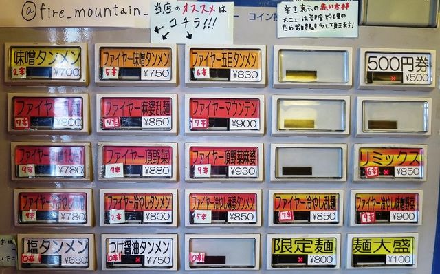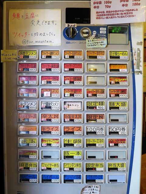今回は券売機の全貌UP。迷わず「0辛」のタンメンのボタンをぽちっとなぁ〜。