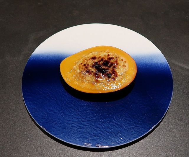 徳島産のとろけるような完熟マンゴーの中央には、フォアグラのブリュレ。