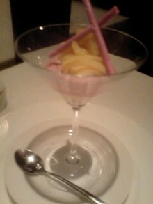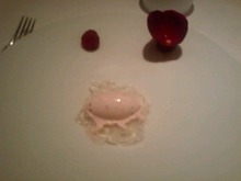 薔薇のアイス ライチのリキュール“ディタ”のジュレとフランボワーズ。