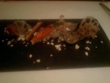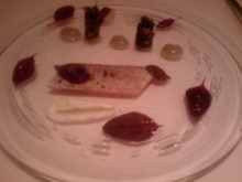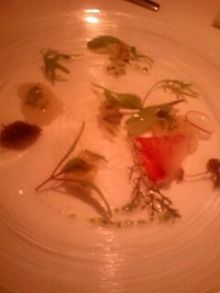 この白いふわふわが甘くなくてちゃんとした前菜でビックリ。