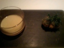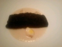 鱈の白子のムニエル パセリとレモンの香り 白子のフラン 温かい甲殻類のコンソメジュレ