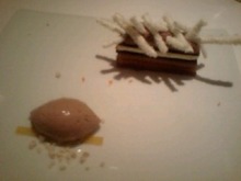ガトーマンダリンナポレオン ココナッツ風味 マダガスカル産チョコレートのグラス。