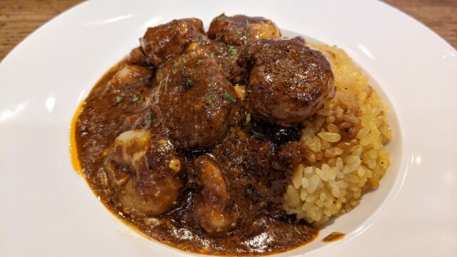 行きたかったお店は満席で、偶然見つけたこのカレー屋さんの写真がとても魅力的でした。特に「ザ・リッチ」というメニューにはたくさんのおかずが付いていて、優柔不断な人でも迷わずに選べるのが嬉しいです。