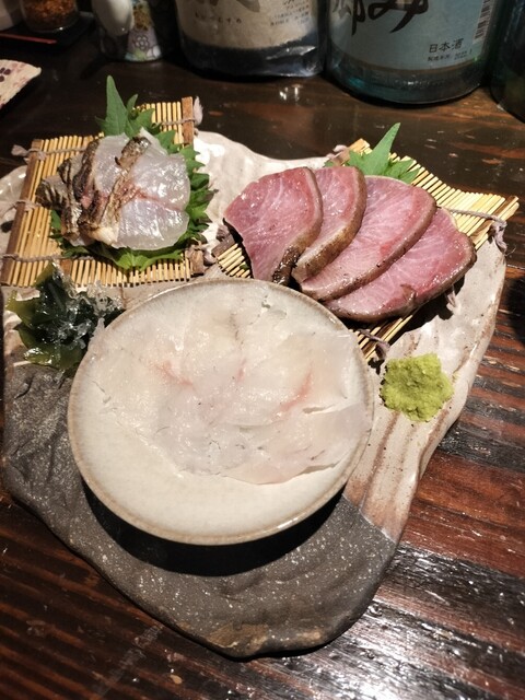 ぶりのタタキと、白モツの燻製が美味しかったです。