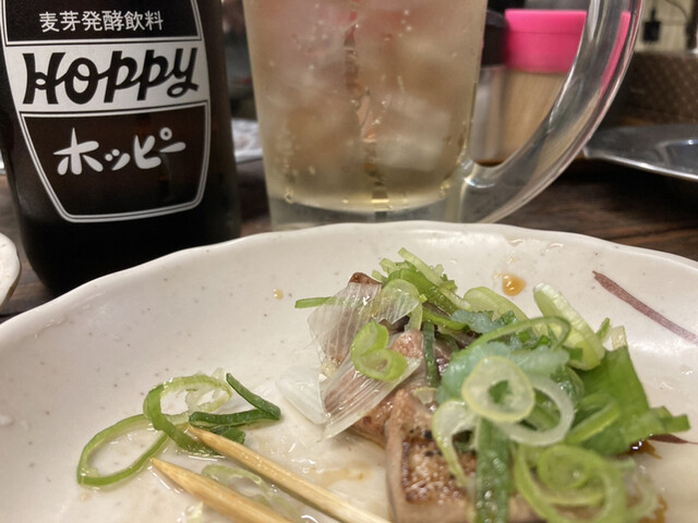 「ホッピーセットとおまかせタレ5、素焼きをにんにくで!」