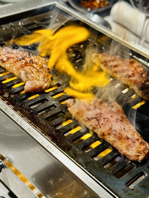 焼肉は「牛テール」「シャトーブリアン」「ハラミ」「カルビ」「レバー」「ホルモン」と、どれも美味しかった〜オススメは「牛テール」焼き!食べやすくスライスされた牛テールは味わい濃い☆肉好きならハマる美味しさがあります!どのお肉も美味しいけど、やっぱり「シャトーブリアン」は最高♡サンチュや胡麻の葉に巻き、キムチやニンニク&青唐辛子を入れて一緒に食す!最後の最後まで美味しいかった。