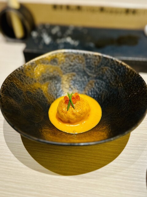 〆の忘れられないTKGは、確かに「忘れられない」逸品料理となりました♡素晴らしいの一言です!見た目も美しく「イクラ」がトップに彩りを艶やかに飾り美味しかった!デザートは可愛い「クマさん」を黒蜜につけて♡最後の最後まで満足度の高いコース料理でした。