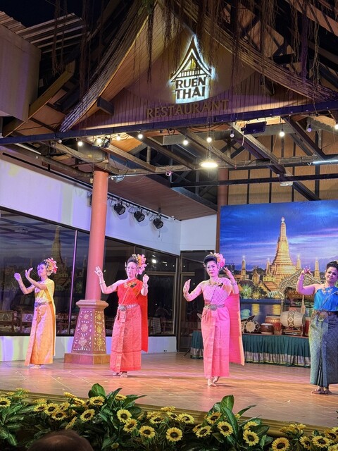 タイの伝統建築を再現した美しい空間の中で、煌びやかな衣装を纏った踊り子さんたちの舞を見ていると、まるでタイムスリップしたような気分に♡この優雅な雰囲気こそ、観光で訪れるならぜひ体験してほしいポイントでしょう〜また、スタッフがとっても親切♡英語でのコミュニケーションもスムーズで、常に笑顔で対応してくれます!観光客向けの雰囲気ではありますが、サービスや料理の質は間違いなく一流!タイの伝統的なおもてなしの心を肌で感じることができました。