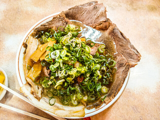 ネギ大盛り!バラ身のチャーシューが美味しい!⸌⍤⃝⸍