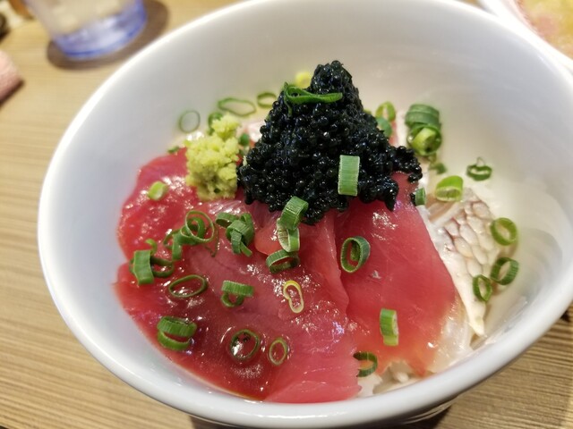 本鮪、真鯛、キャビアという豪華丼!