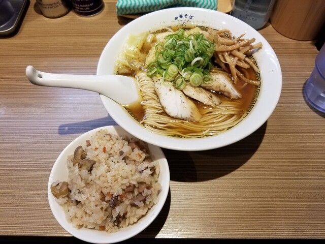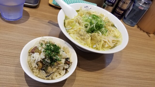 牡蠣煮干ワンタン麺&牡蠣とオリーブの炊き込み飯