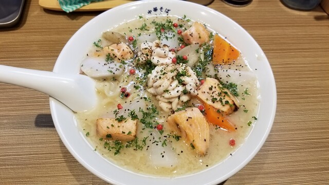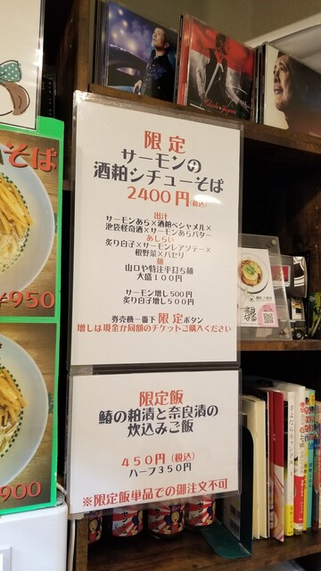 サーモンの酒粕シチューそば+鰆の粕漬と奈良漬の炊き込みご飯