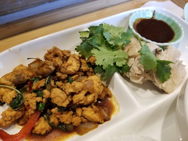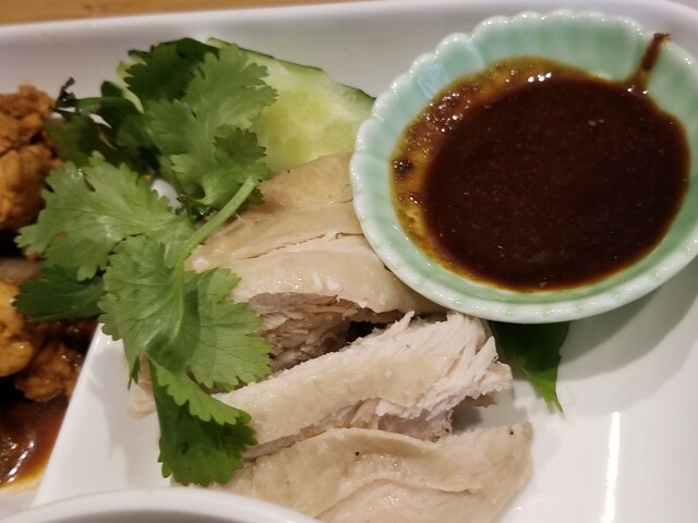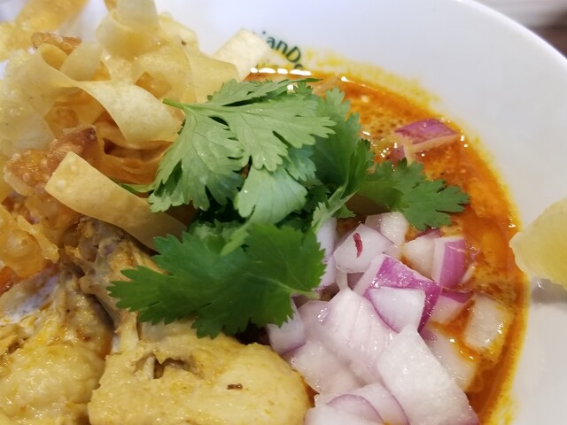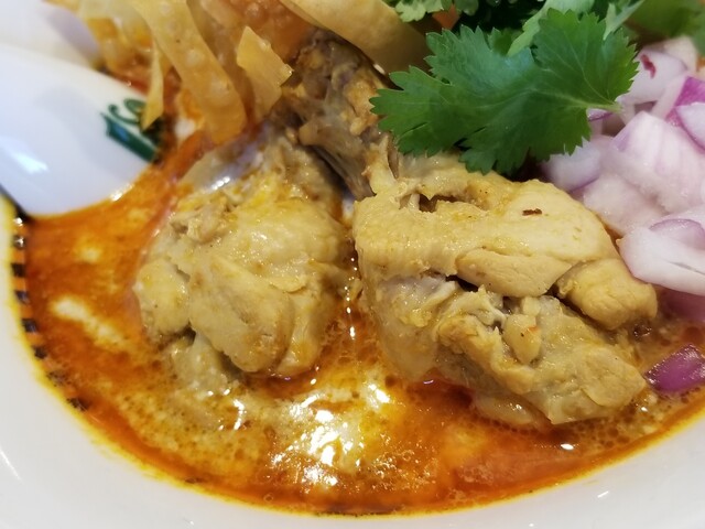 柔らかくい鶏肉に揚げ麺やパクチーも