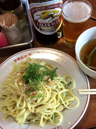 『野毛のペペロンチーノ』とも呼ばれる、裏の名物メニュー「パターン」(600円)で有名な「第一亭」ながら、「パターン」は当店の『まかない料理』が常連さんたちに知られるようになって、名物へと進化していったメニュー。