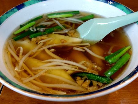 これまでに何度も何度もやってきている「第一亭」で、今回、初めていただいた料理が「スープ餃子」(650円)だ。