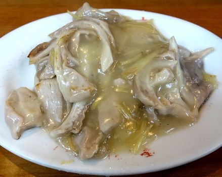 私自身は、なんといっても「ホルモン炒め」(650円)が、ここ「第一亭」で最も好きな料理なんだけど、それでも何回かに一度は、この「チートのしょうが炒め」も食べたくなるんだなぁ。