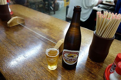 最初の一杯は「ビール大」(600円)。店特有の栓抜きで勢いよく開けてもらうのが、ここでの楽しみの一つだ。