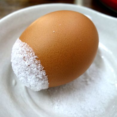 最後はカウンターの「ゆでたまご」(70円)。塩が帽子のように乗せられ、ちょうど良い塩加減で楽しめる。