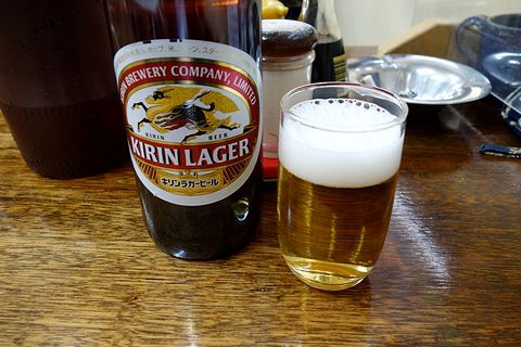 最初の一杯はもちろん、アサヒかキリンの大瓶から選べる「ビール大」(580円)。今日はキリンにして、心地よい「シュポッ!」という抜栓の音に耳を澄ませます。この音、これがたまらないんです!
