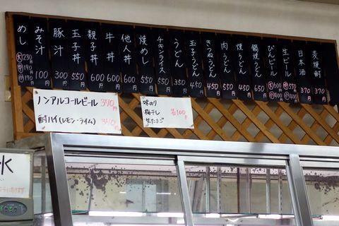 そして食事の人は「めし」(大230円・中190円・小170円)や「みそ汁」(100円)を注文し、飲む人は「びんビール」(大600円・小400円)や「日本酒」(370円)をもらって、「くわだ食堂」でのひとときを楽しむのだ。
