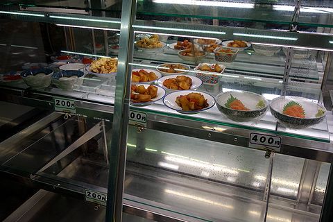 なにしろ、メニュー上の字面(じづら)で決めるんじゃなくて、目の前に本物の料理がずらりと並んでますからねぇ!