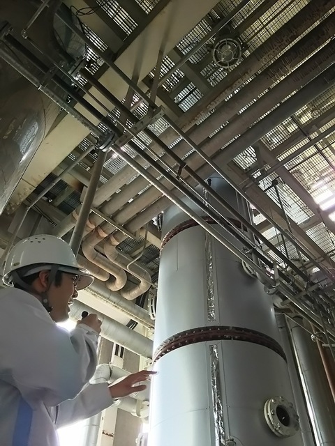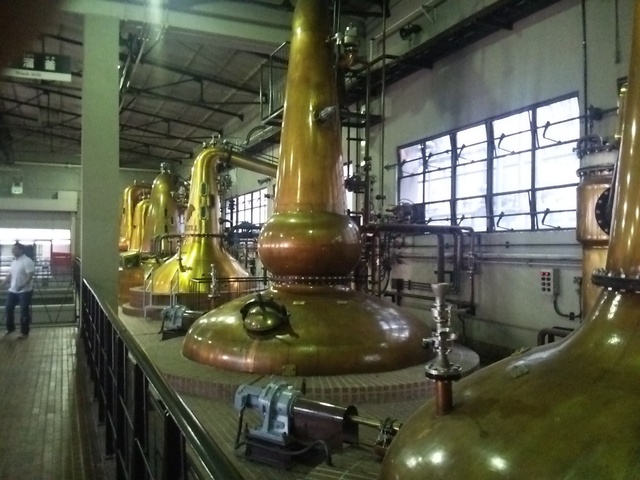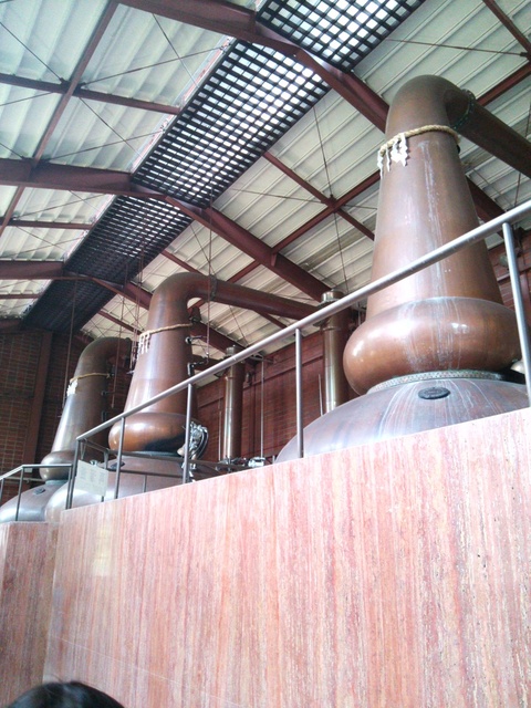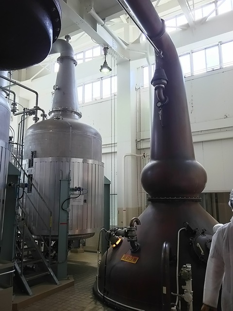 稼働中の連続式蒸留器