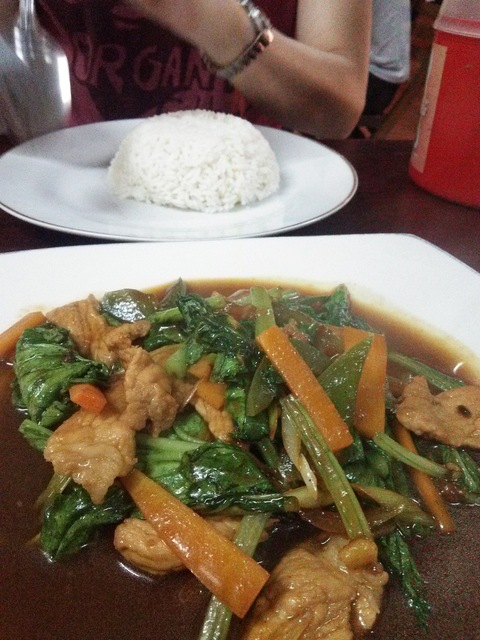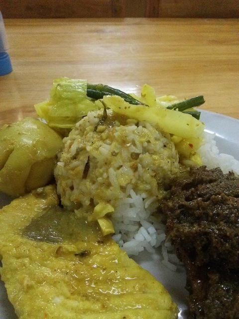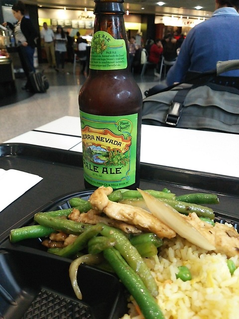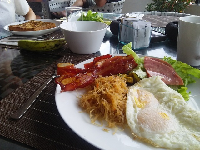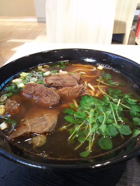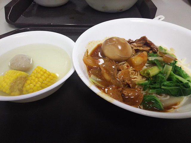 空港での朝食。牛肉麺