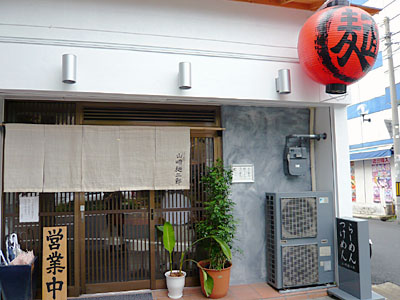 店の入口隣にある製麺室で作ってる自家製の太めの平打ち麺、