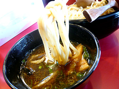 このコシのある麺を濃厚醤油つけ汁に絡めて。。