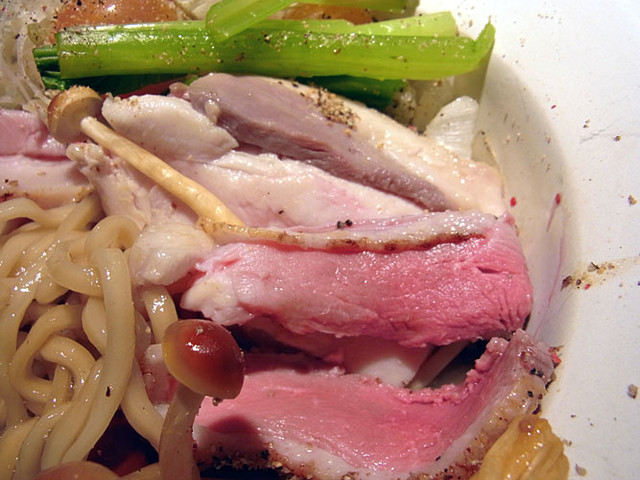 鴨の旨味に、魚介の旨味を合わせることでしっかり厚みを出して
