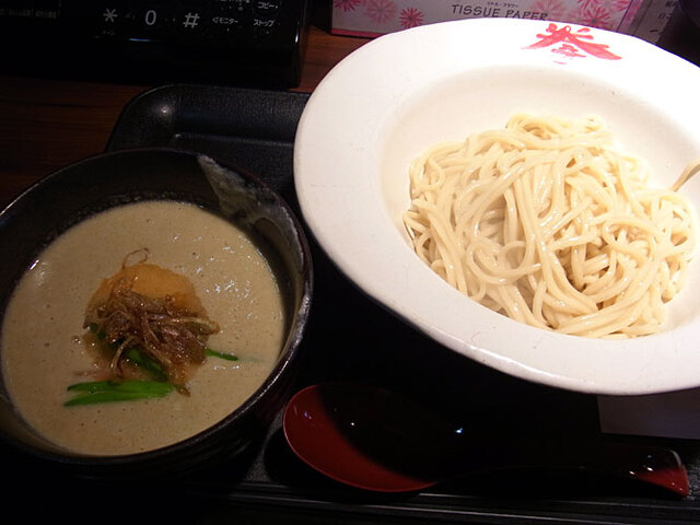 大阪の麺助グループと熊本の天草大王 生産者で開発した「麺助鶏」使用の濃厚白湯つけ汁に、宍道湖しじみの旨みたっぷり出汁に浸かった麺。luxury過ぎ!