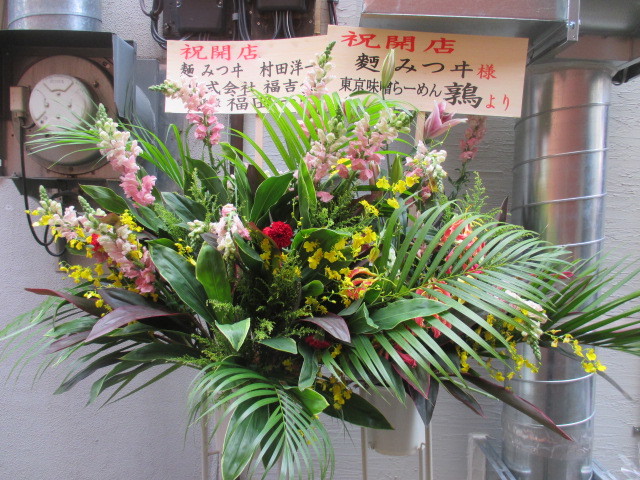店頭には、修業先の『せたが屋』前島社長からの祝い花!
