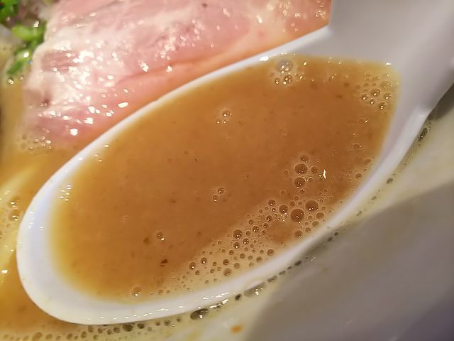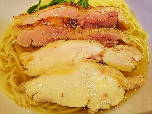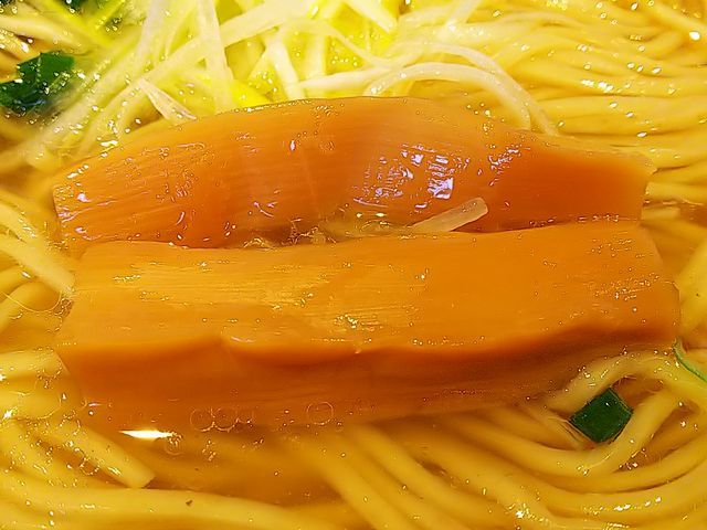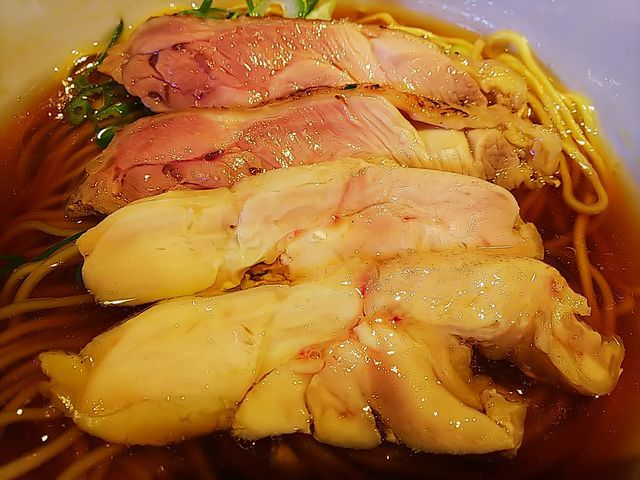 ただ、見ためからすると、先々週の「鴨そば(醤油)」の方が、トッピングの具もいっしょで、スープの色が違うだけなのに…