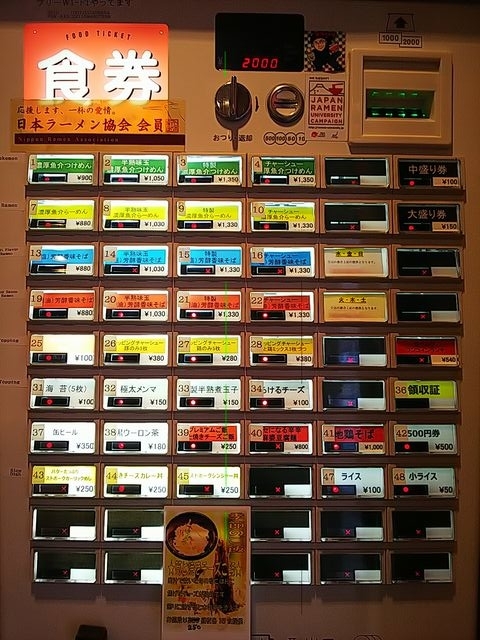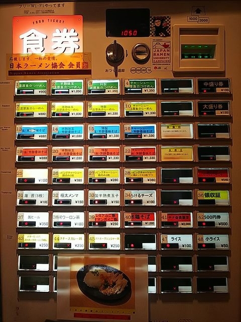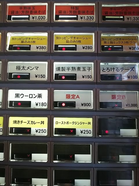デフォルトの「濃厚魚介つけ麺」、「濃厚魚介らーめん」、「(塩)芳醇香味そば」、「(醤油)芳醇香味そば」のボタンが500円に変更されていた。