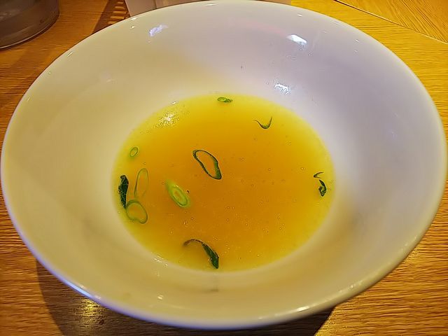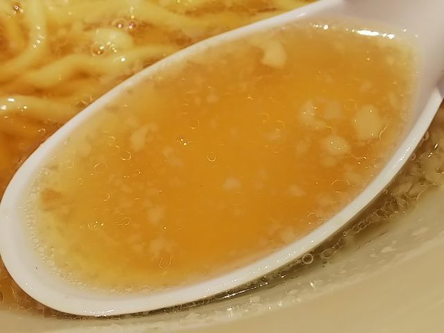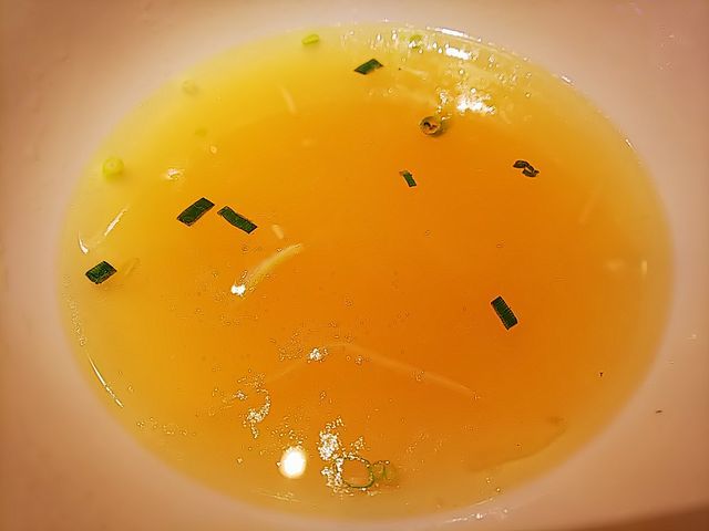 まずは、鴨脂がキラキラ煌めく黄金色したスープをいただくと…