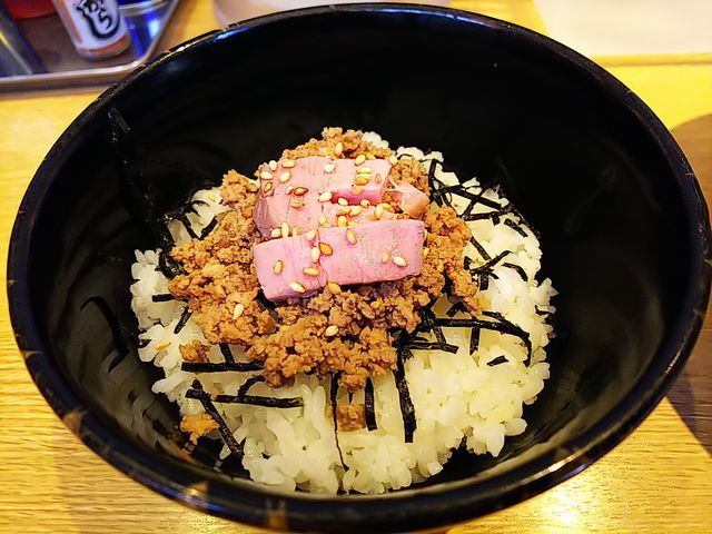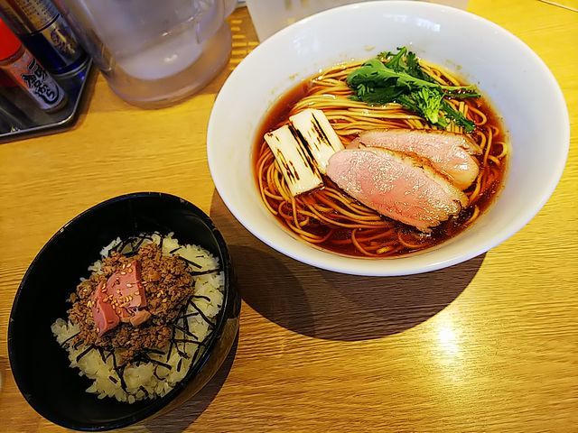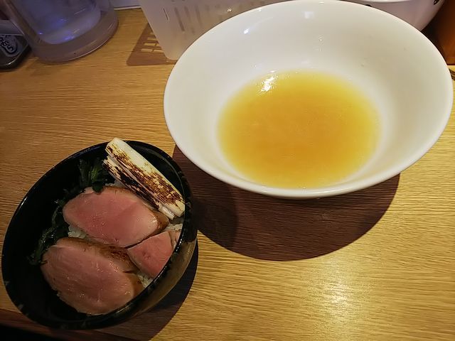 なお、今日も、先々週、先週に引き続き、伊藤CEO作の鴨そぼろに刻み海苔が載せられて、100円という赤字覚悟の「鴨そぼろご飯」が用意されているというのを、伊藤CEOのTwitterのツイートを見て、知ってはいたけど、今日は、シンプルに白飯に鴨スープをかけて、鴨雑炊にして〆たいと思ったので♪