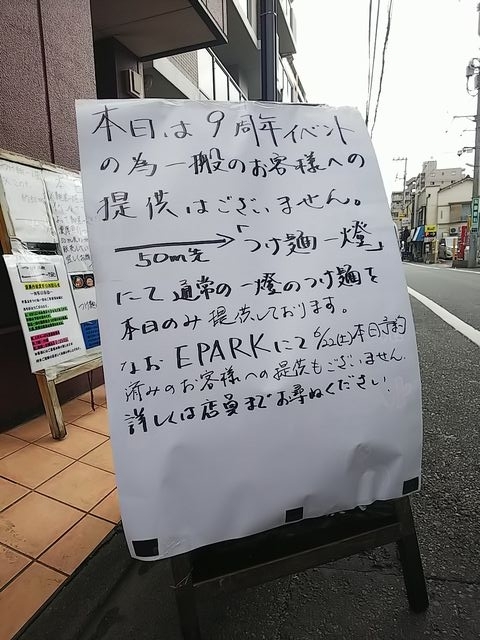 本日のランチは、開業9周年を記念して、本日6月17日から19日までの3日間、デフォルトのラーメン、つけ麺を500円のワンコインで提供する『麺屋一燈』へ!