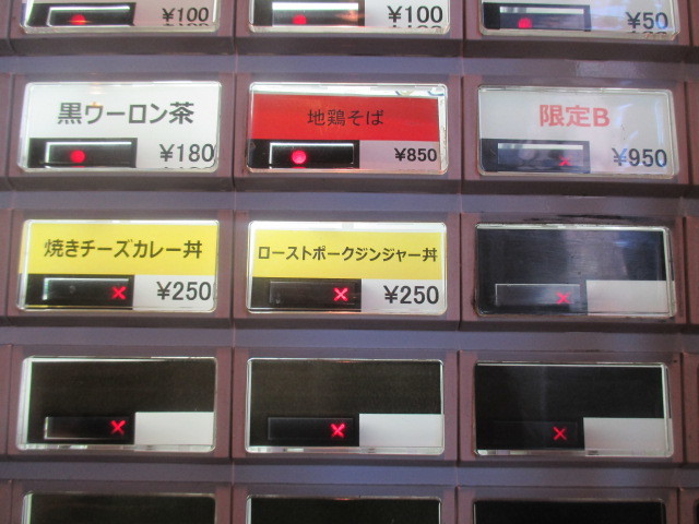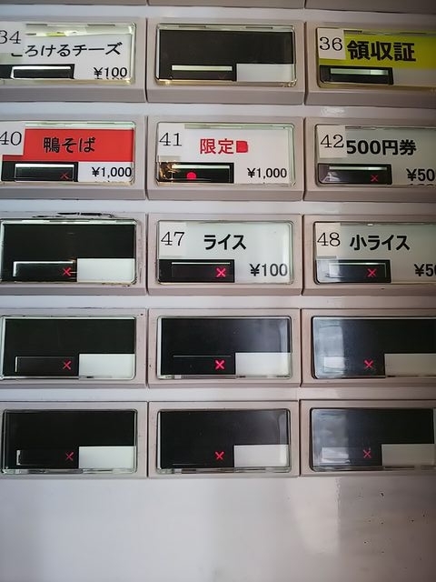 そうして、千円札をお札の挿入口に入れて「鴨そば」の食券を買って…