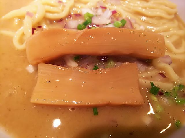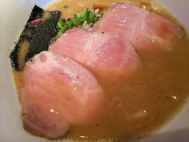加水率30%か31%くらいの低加水に近い中加水麺と思われる麺は、日本蕎麦の二八蕎麦を少しラーメン寄りにしたような食感に感じられて!