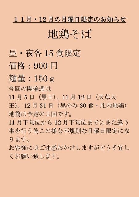 「地鶏そば(醤油)」については、それ以上に美味しい地鶏の醤油ラーメンを食べさせてくれる店は、いくつもあるけど…