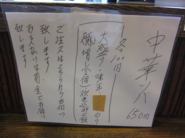 目の前のカウンターの壁に貼られたメニューを見ても「中華ソバ」1本!