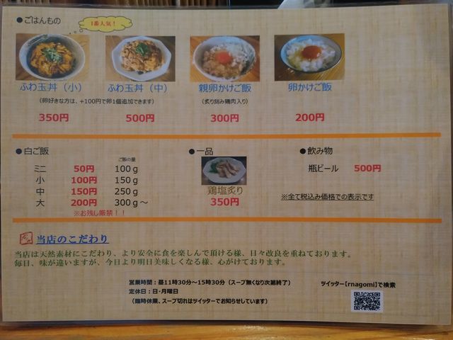 ふわ玉丼(ミニ)…400円/ふわ玉丼(小)…500円/ふわ玉丼(中)…650円